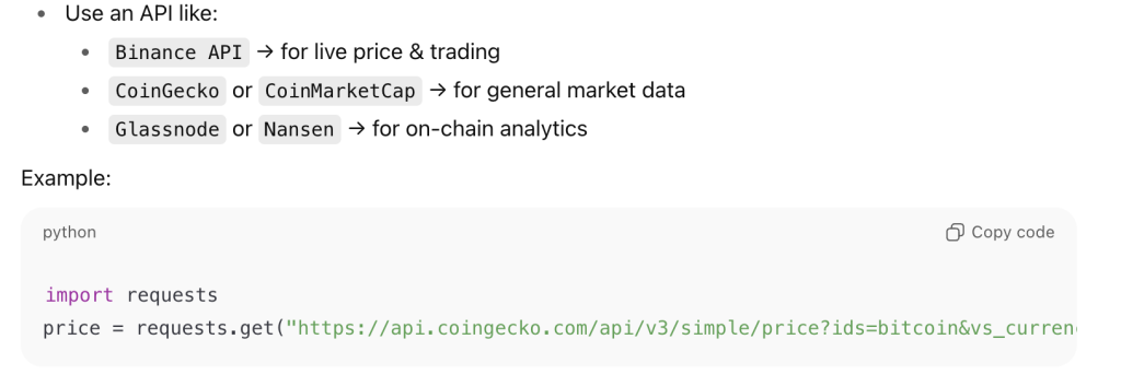 Automated crypto trading with ChatGPT is becoming more common. As a result, users can expect native access to on-chain nodes, protocol-specific APIs, and advanced analytics. This will allow traders to execute strategies and receive alerts without leaving the ChatGPT environment.