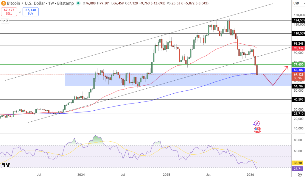 Bitcoin Weekly Chart Breakdown: $67K Slips Into Demand Zone