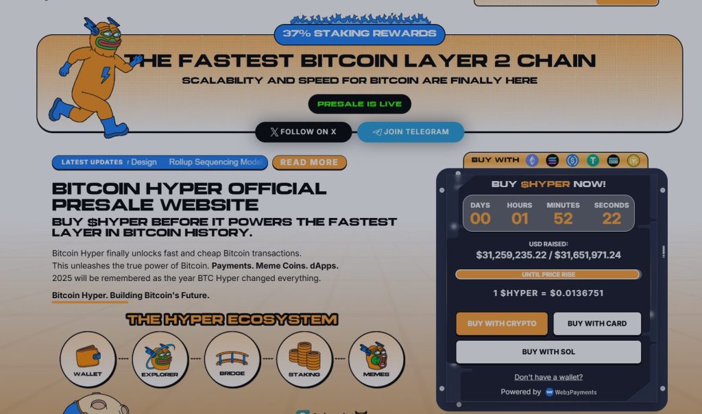 Bitcoin Hyper ($HYPER) is bringing a new phase to the BTC ecosystem. While BTC remains the gold standard for security, Bitcoin Hyper adds what it always lacked: Solana-level speed. The result: lightning-fast, low-cost smart contracts, decentralized apps, and even meme coin creation, all secured by Bitcoin.