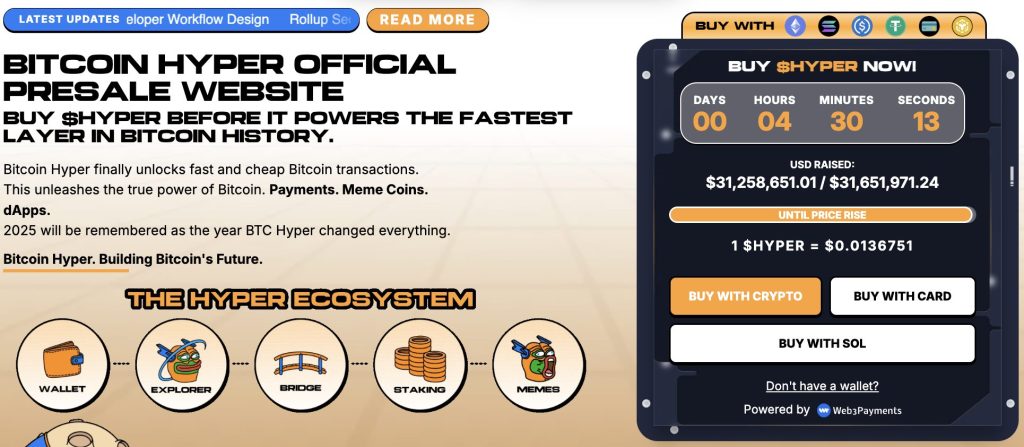 Interest in the project is already strong. The presale has raised over $31,200,000 so far, with $HYPER priced at $0.013635 before the next increase.